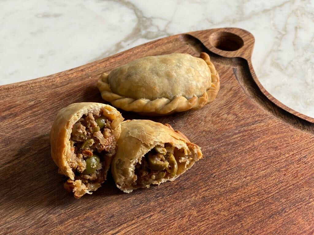 De empanadas worden afgebakken geleverd. Warm ze op indien gewenst; ongeveer 5 minuten op 160ºC in de oven of airfryer.