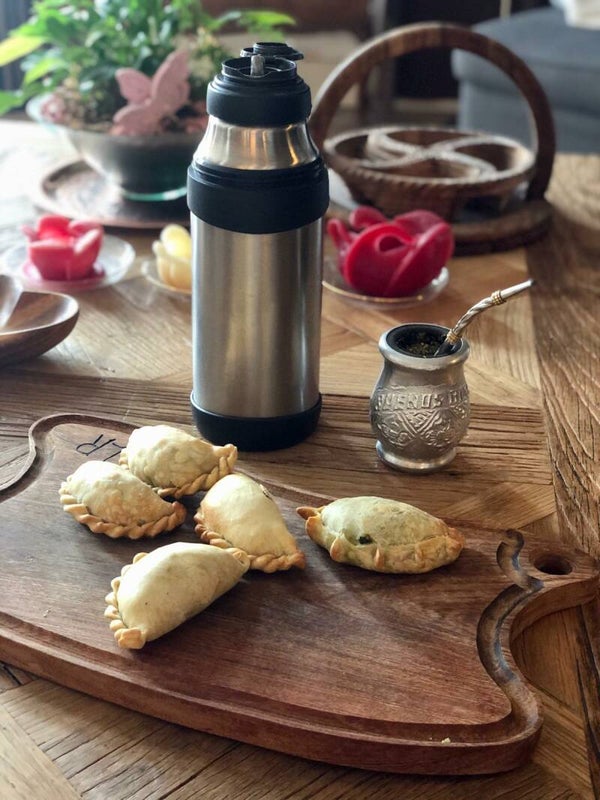 * Relleno de carne, ingredientes: carne orgánica, cebolla, aceitunas, pasas y hierbas.